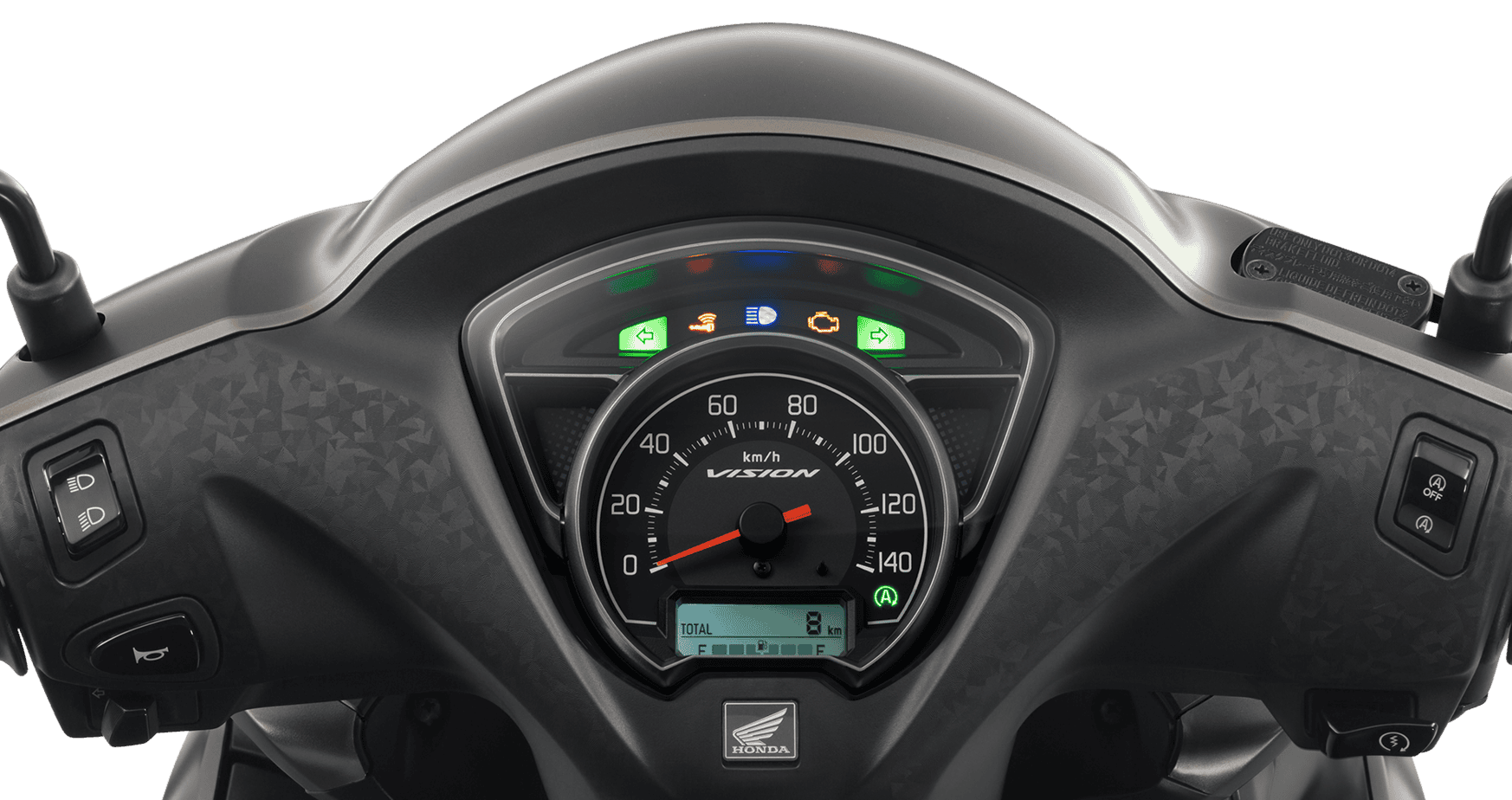 Thiết kế mặt đồng hồ trẻ trung, thanh lịch nhưng không kém phần hiện đại với màn hình LCD hiển thị số quãng đường và mức nhiên liệu