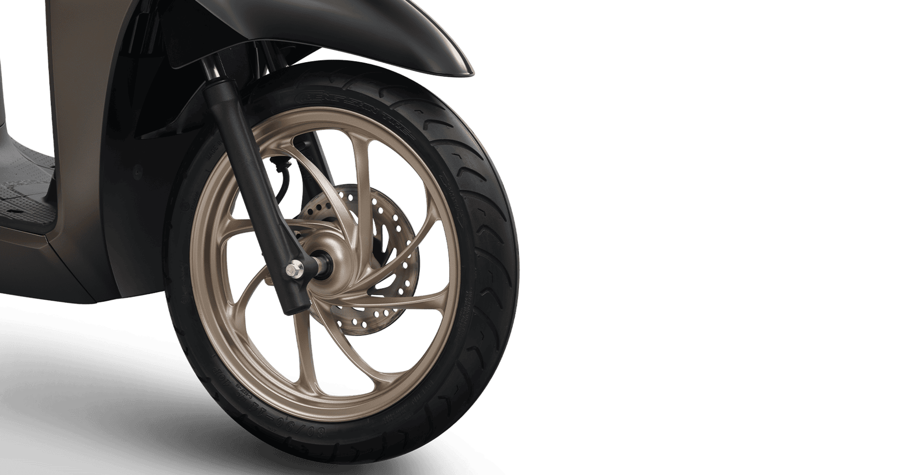 Thân xe nhỏ gọn kế thừa từ nét thiết kế của dòng xe SH, với những đường nét rõ ràng, liền mạch nay nổi bật và cuốn hút hơn với màu Nâu Đen trên phiên bản Đặc biệt, kết hợp cùng với vành xe màu đồng, mang đến hình ảnh thời thượng và sang trọng.